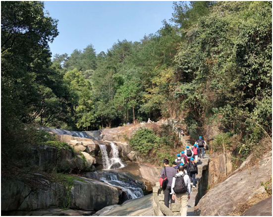 拜完大廟,我們開(kāi)始了衡山之登。深秋的衡山,艷陽(yáng)高照但并不炎熱,秋風(fēng)習(xí)習(xí),正是登高的好時(shí)節(jié)。我們沿著小道拾級(jí)而上,伴隨著泉水叮咚,一路上歡歌笑語(yǔ),走著,看著,滿眼都是美景……