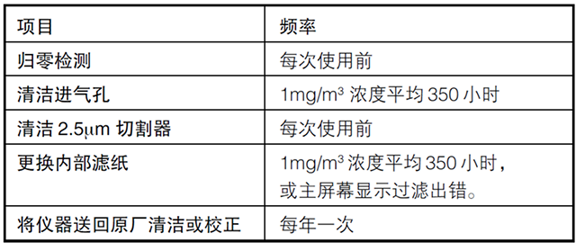 TSI 8530/8532粉塵儀需要定期維護保養(yǎng)。表 4-1 所列,為廠家建議的維修保養(yǎng)時間。